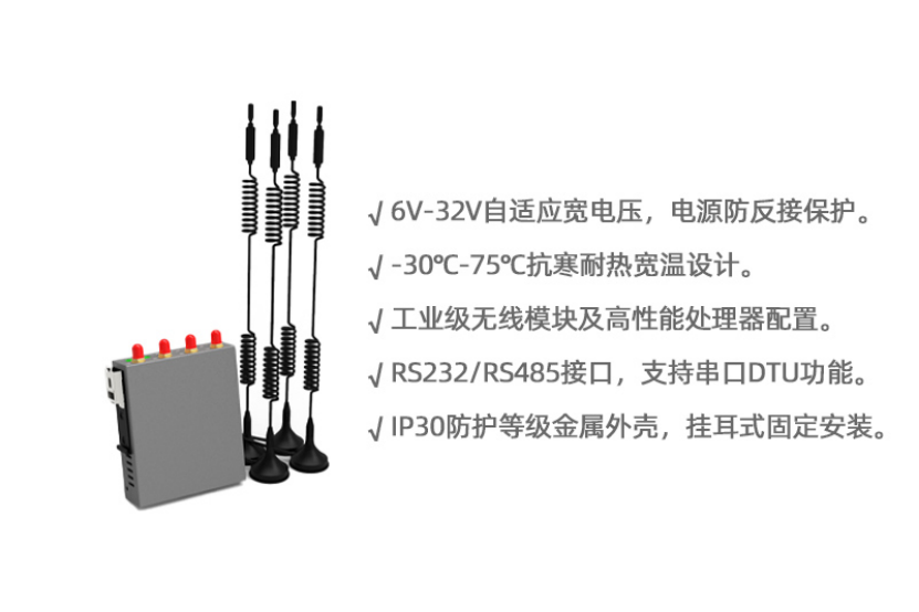 提供RS232/RS485接口,支持串口DTU功能。